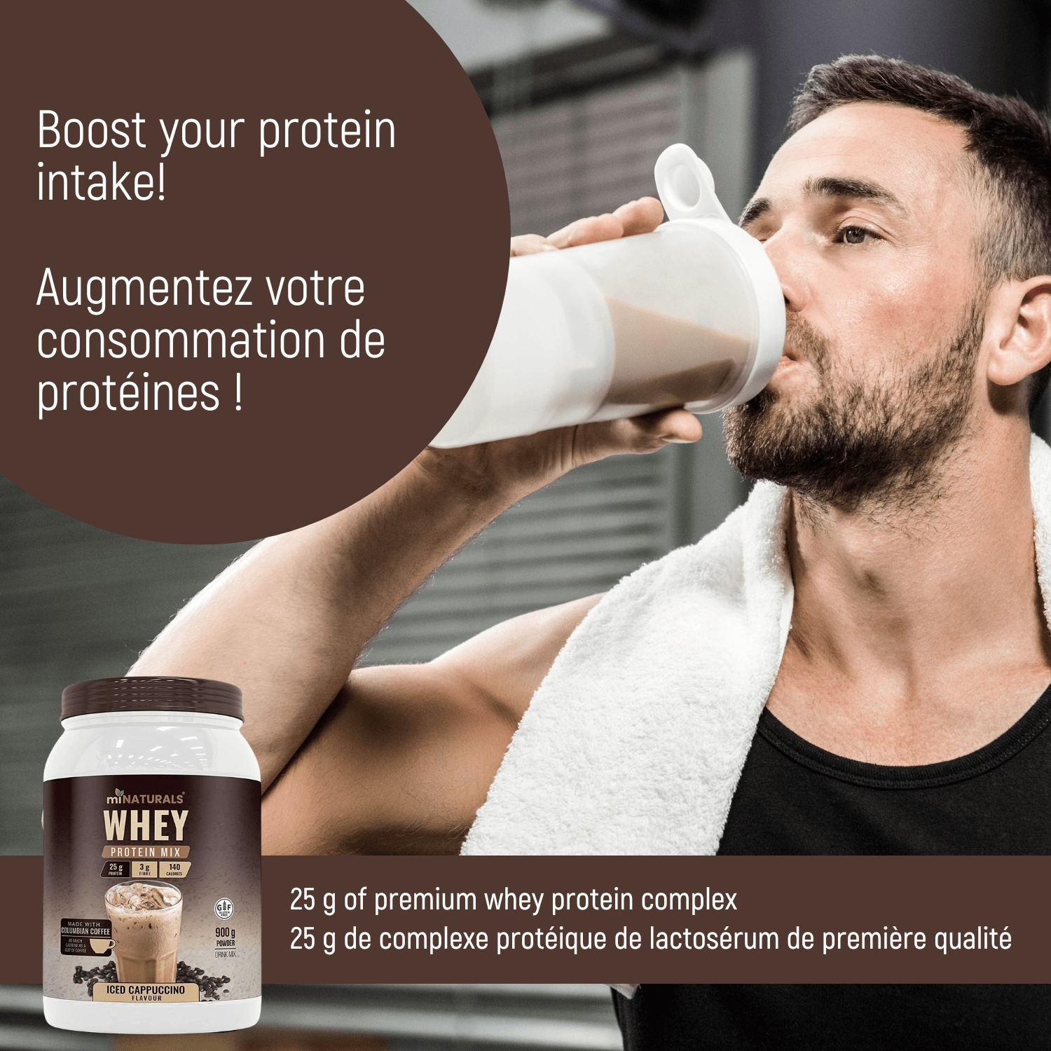 Whey isolate protein powder, iced cappuccino protein shake, high protein drink mix, muscle recovery supplement, low lactose protein powder, gym protein coffee flavour, premium whey isolate 900g
