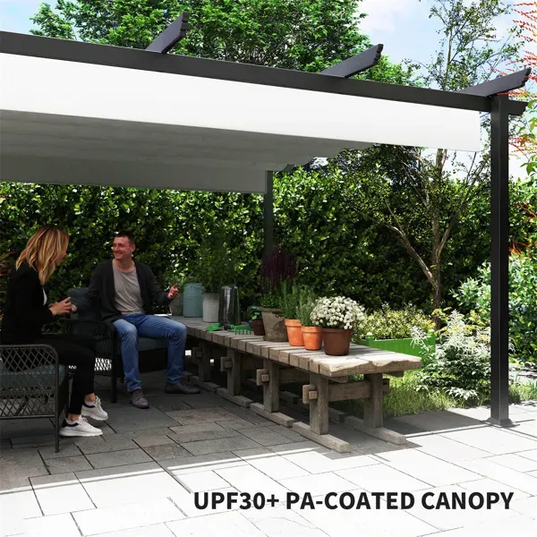 Built with high-quality materials like wood or aluminum, the pergola ensures long-term durability and stability in various outdoor