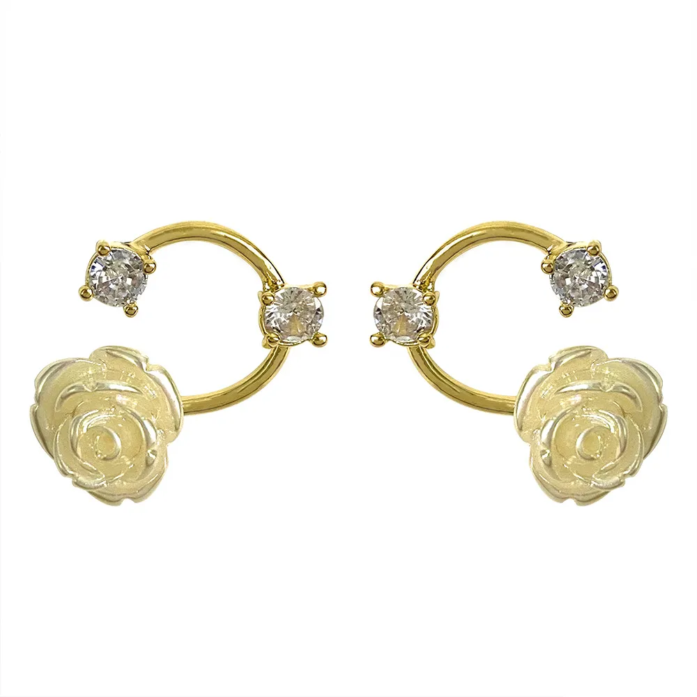 White Rose Rhinestone Silver Stud Earrings Simple French