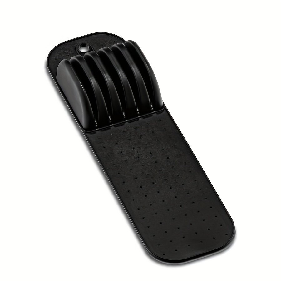 WIEZ 5-Slot Plastic & Silicone Knife Storage Rack – Soft-Edge Non-Slip Drawer Organizer for Space-Saving Kitchen Safety