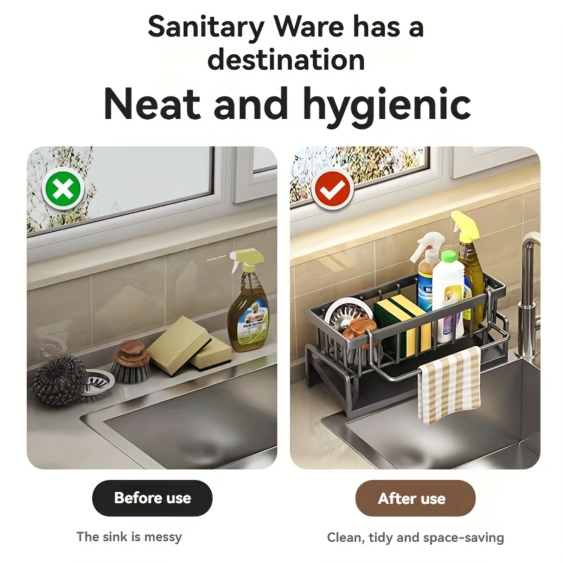 Prevents dirty sponges and cloths from sitting directly on benchtops.