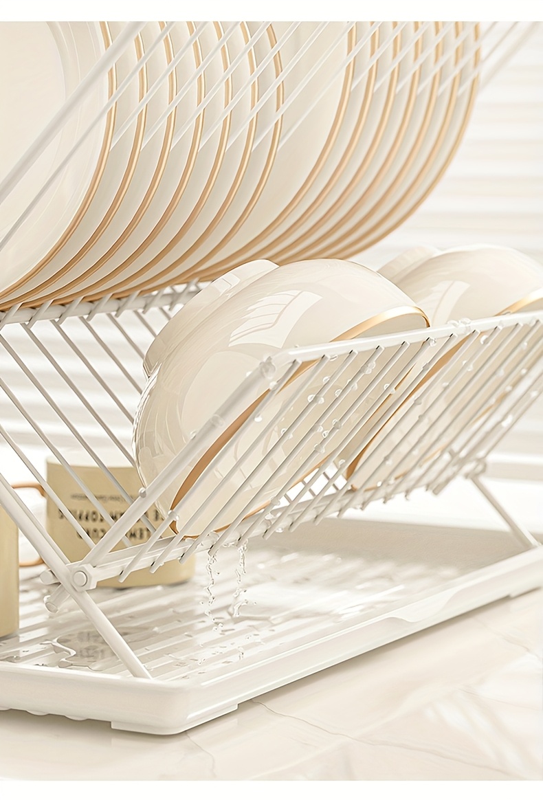 The X-shaped structure offers stability while folding flat for easy storage when not in use, making it ideal for compact countertops and small homes. Its two-layer design provides dedicated spaces for plates on the upper tier and bowls or utensils on the lower tier, ensuring optimal airflow and faster drying. The open construction prevents moisture buildup, helping maintain clean, hygienic kitchen habits.