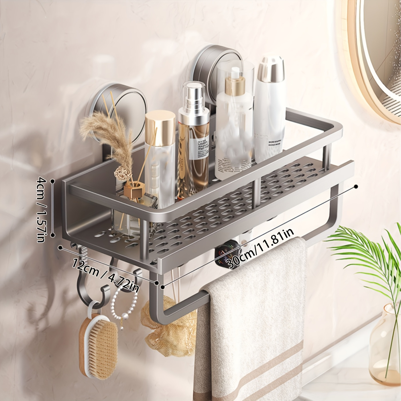 WIEZ Wall-Mounted Polished Aluminum Storage Rack – Space-Saving Multi-Functional Shelf with Drainage Holes