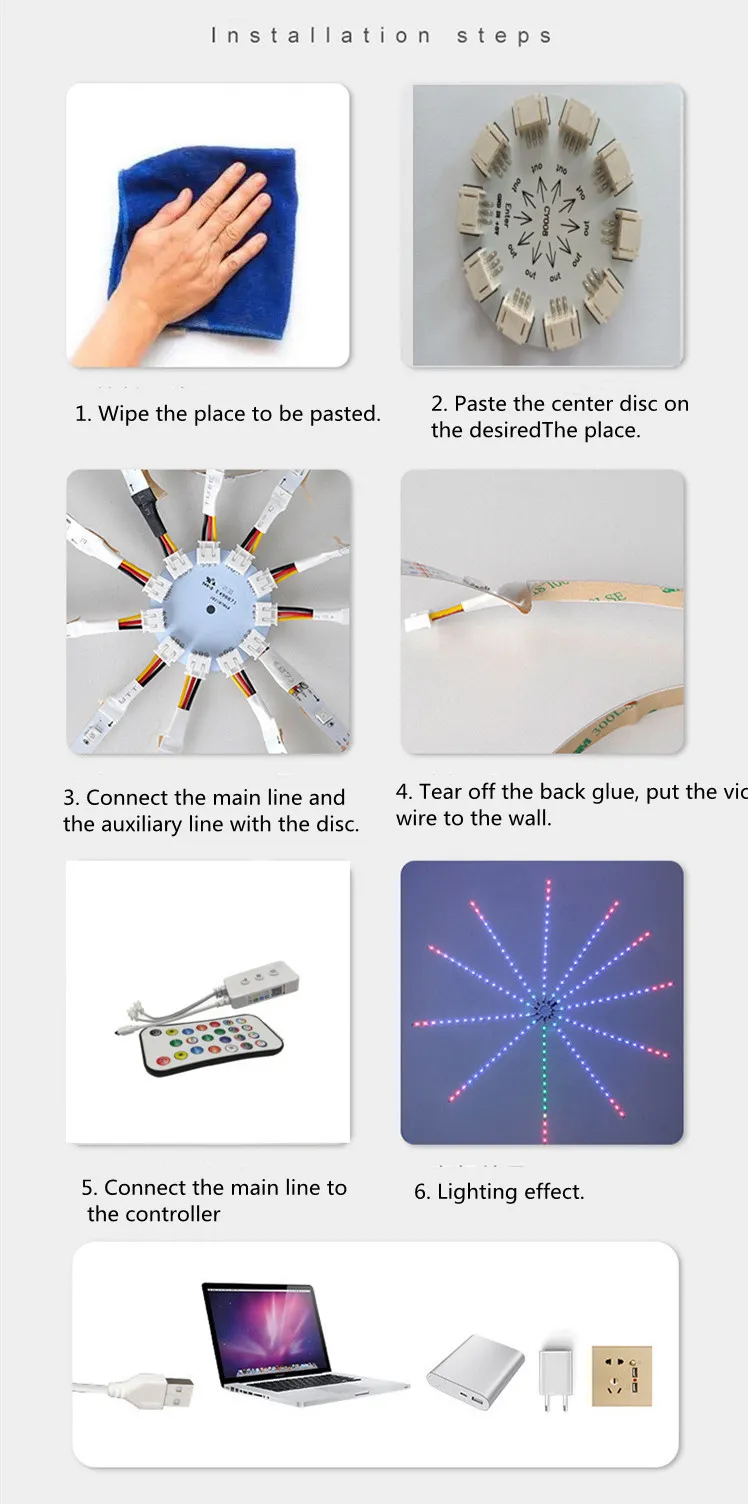 5 Style: 6 * 0.25m 8 lights+1m 32 lights Bluetooth APP+40 key remote control,