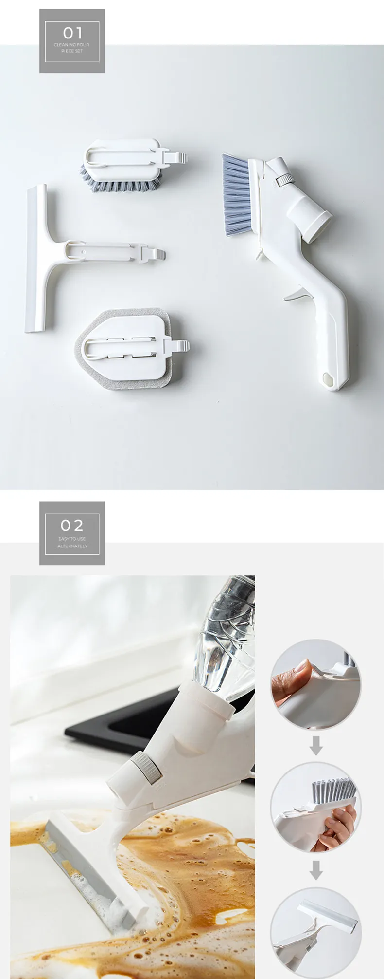Many kits are designed with ergonomic handles for comfortable grip and control, allowing users to clean large surfaces without fatigue. The lightweight construction makes the tools easy to handle, while still being durable enough for regular use.