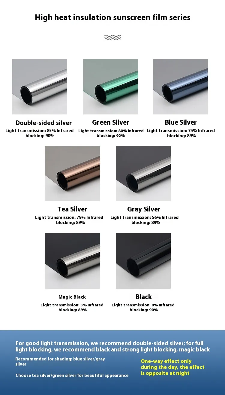 [Insulated Sunscreen], Black Silver with Electrostatic [Insulated Sunscreen], Double sided Silver with Adhesive [Naturally Illuminated],