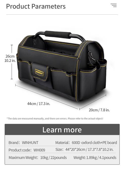Choose the WINHUNT Electrician Tool Bag for its combination of strength, durability, and practicality. Constructed from durable canvas and composite materials, this bag offers plenty of storage space for your tools, making it perfect for electricians, contractors, and DIY enthusiasts. Its multi-functional design and portable nature ensure that you stay organized and efficient on the job.