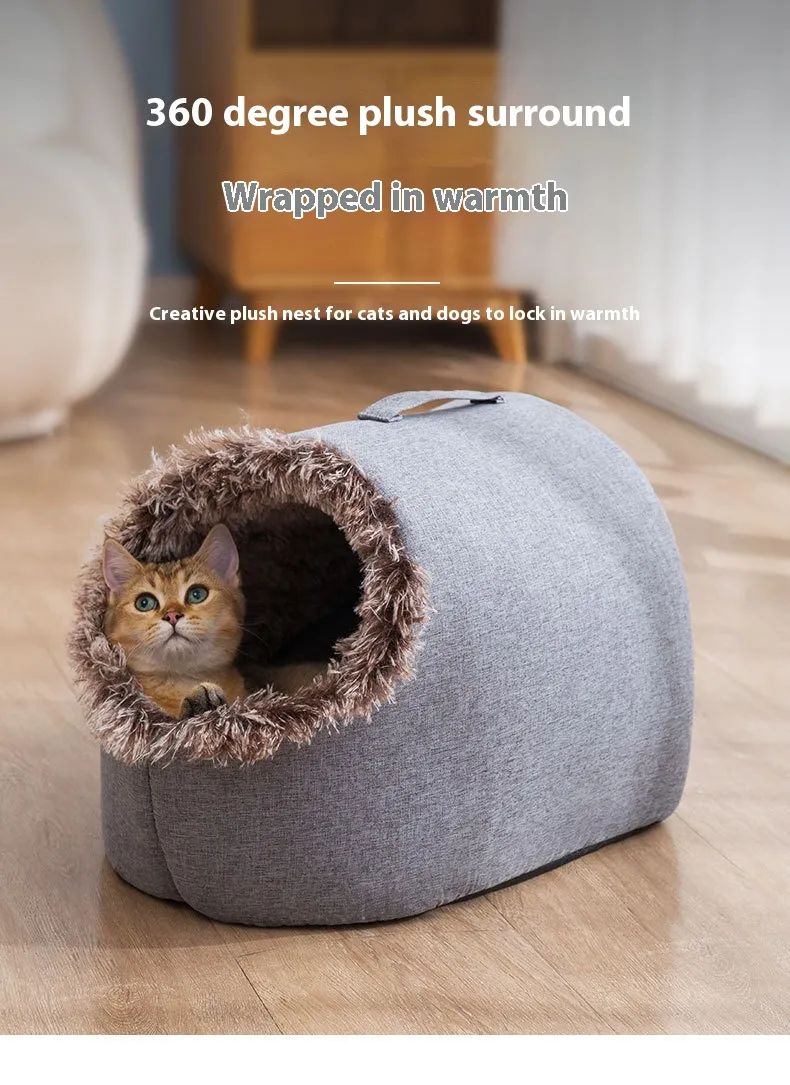 Winter Warm Pet Bed – Enclosed Soft Cave for Dogs & Cats