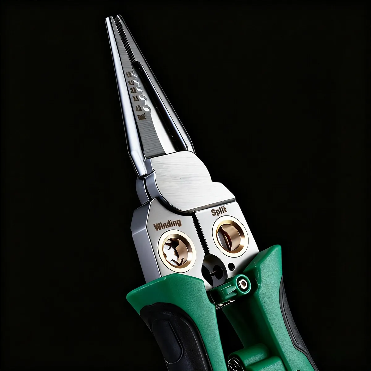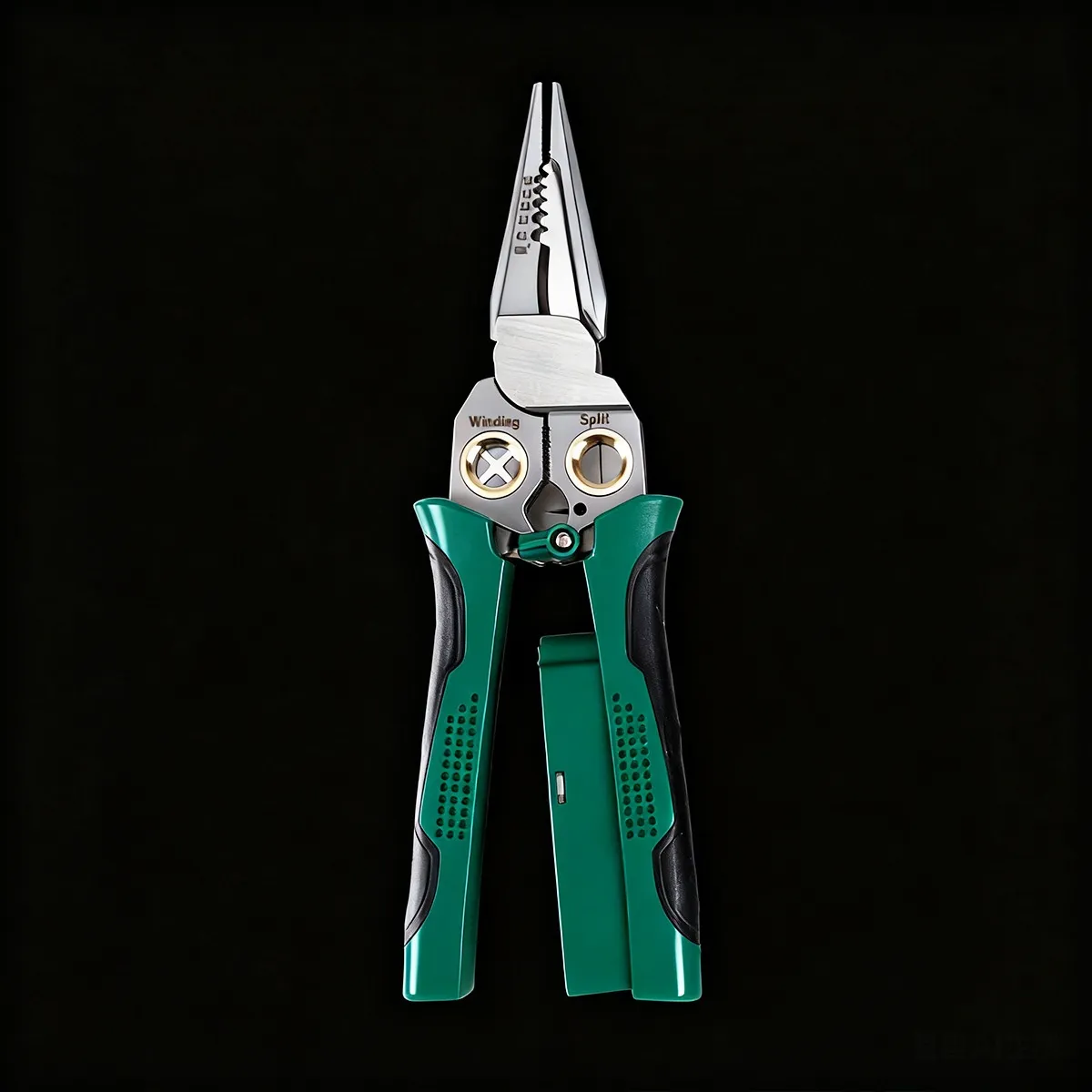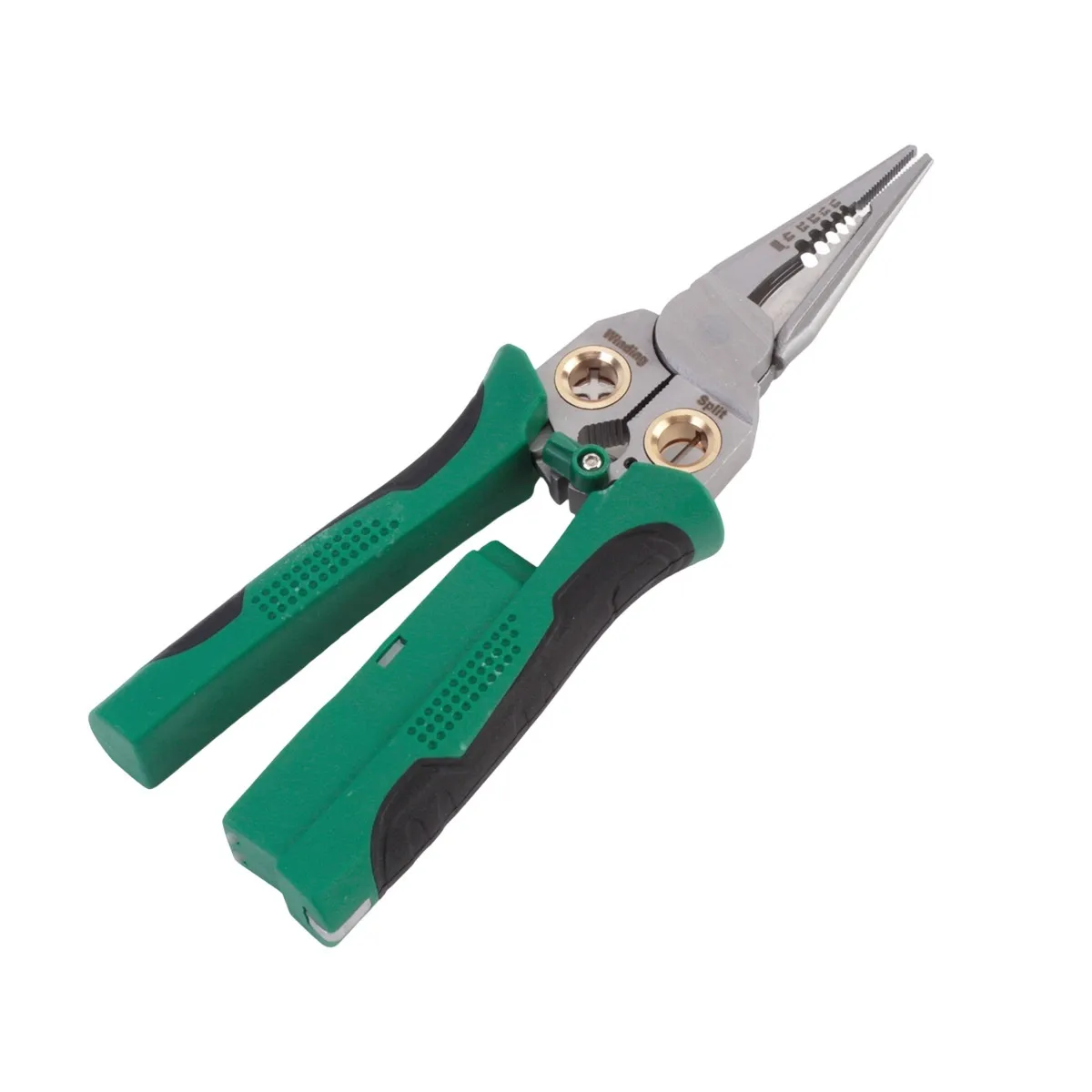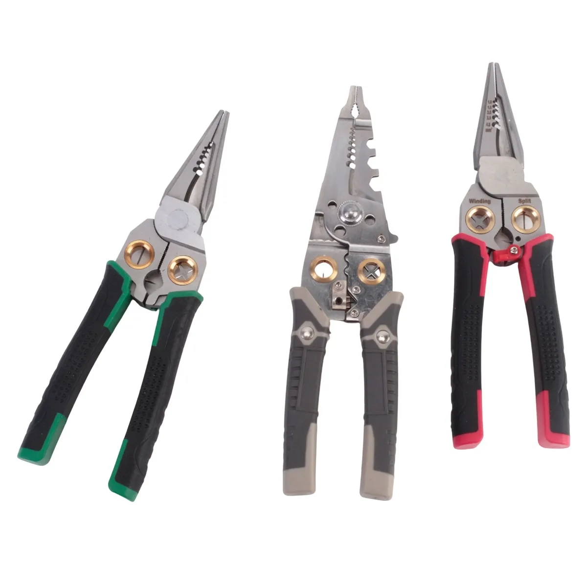 Function: Stainless steel multi-purpose pliers with voltage tester, wire strippers, and pointed tips for electrical work