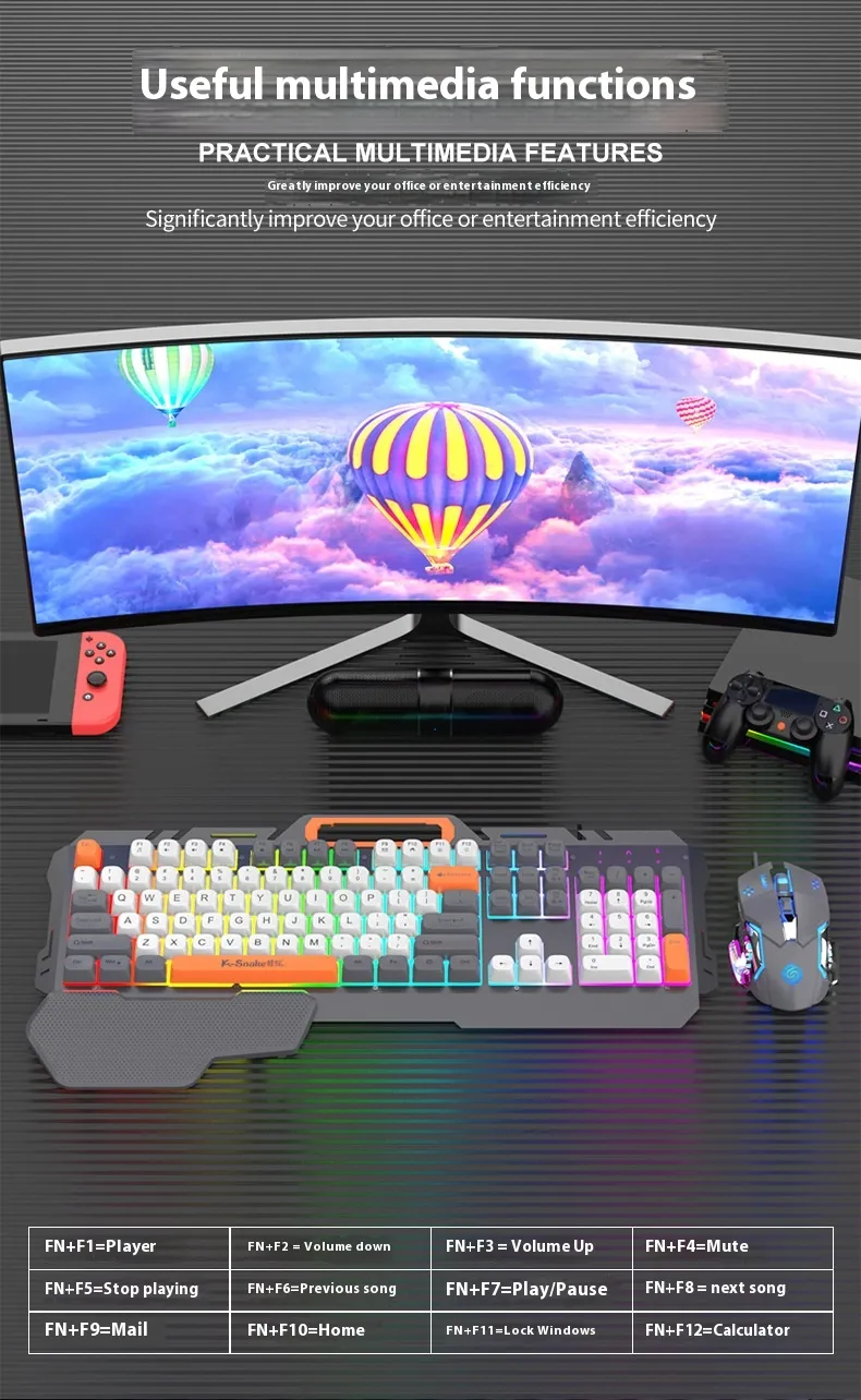 Level up your gaming experience with the Wired Game Keyboard Color Matching Notebook Key Mouse Suit, designed for gamers who want style and performance in one package. This matching set includes a wired keyboard, mouse, and notebook keys, all color-coordinated for a visually striking setup. Perfect for New Zealand gamers, students, and professionals who love gaming aesthetics while maintaining functionality.
