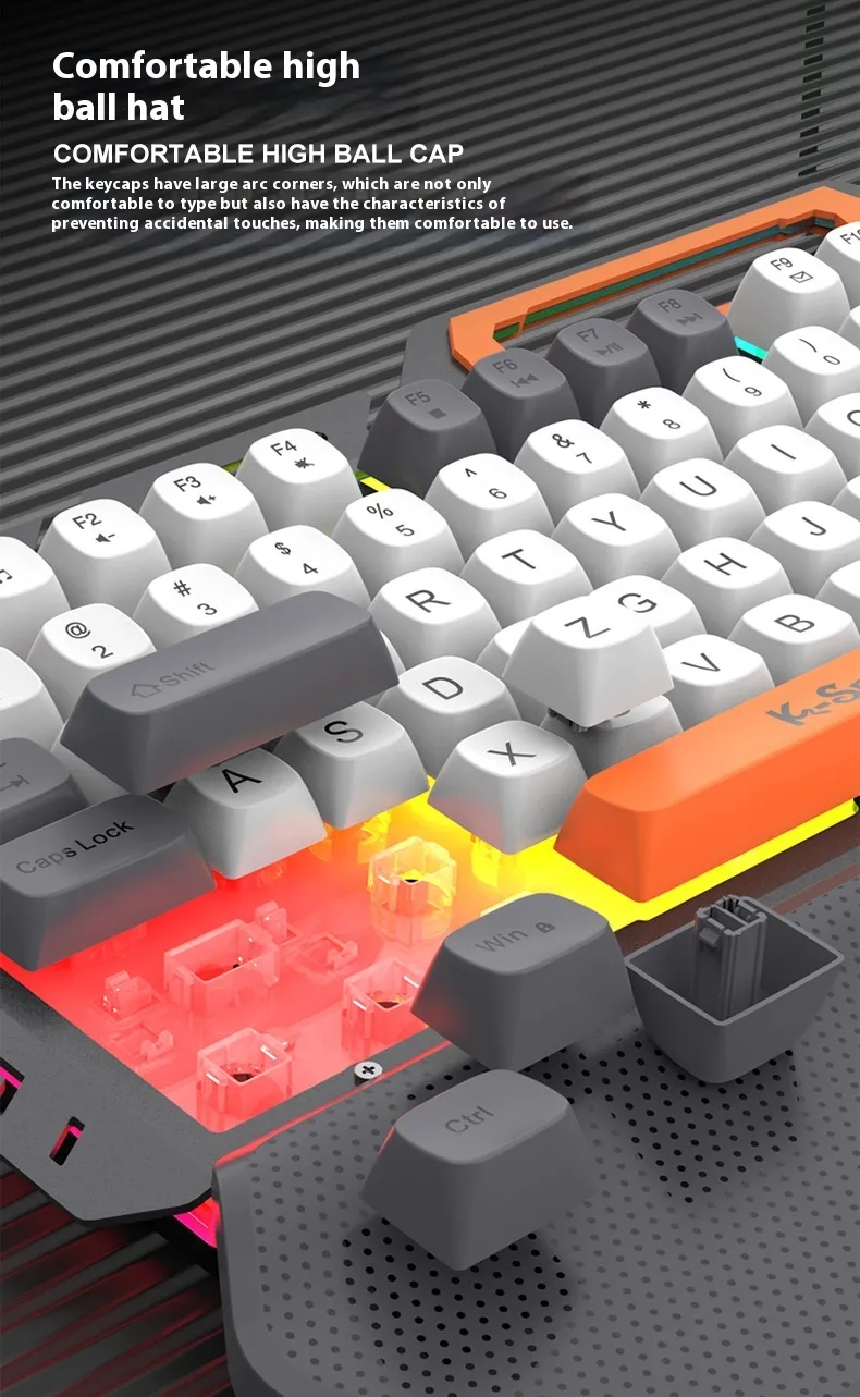 Crafted for performance, the wired keyboard provides fast, precise keystrokes ideal for gaming and typing. The matching mouse offers smooth tracking and responsive clicks, ensuring accuracy in every game. Made from high-quality materials, the set is built to withstand long hours of use. The vibrant color scheme not only enhances your gaming setup but also adds a personal touch to your desk.