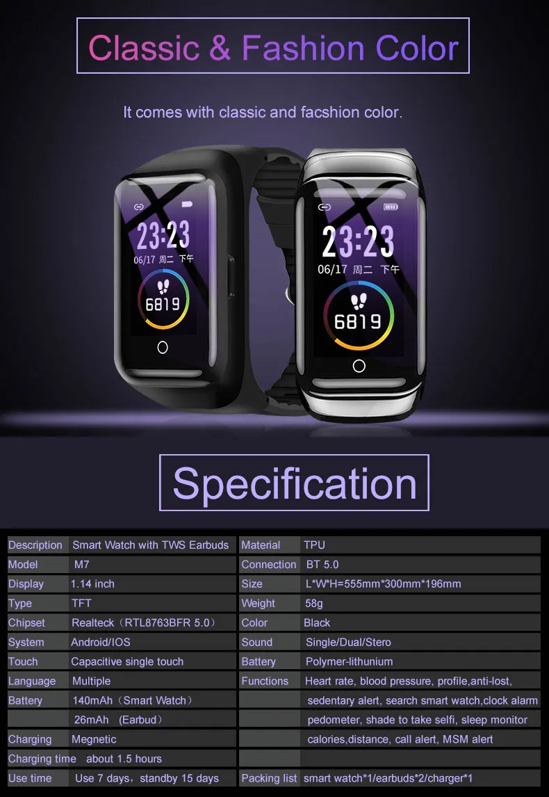 The Wireless Bluetooth Headset Smart Watch Screen Waterproof is the perfect all-in-one wearable device for anyone seeking convenience, style, and functionality. Whether you’re listening to music, taking calls, or tracking your fitness, this device provides high-quality audio, smart tracking features, and a comfortable, sleek design. Its waterproof rating ensures it can handle outdoor adventures or tough workouts, while the long battery life provides uninterrupted use.