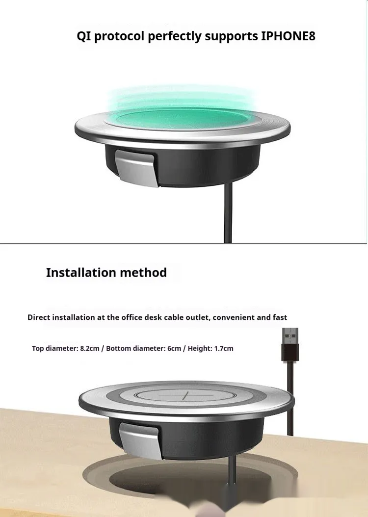 Upgrade your workspace with the Wireless Charger Embedded Desktop Phone Waterproof. Designed to blend seamlessly into your desk or table, this charger provides a clean, cable-free solution for powering your devices. Perfect for New Zealand homes, offices, and cafes, it offers a modern, minimalist look while keeping your phone always charged and ready.