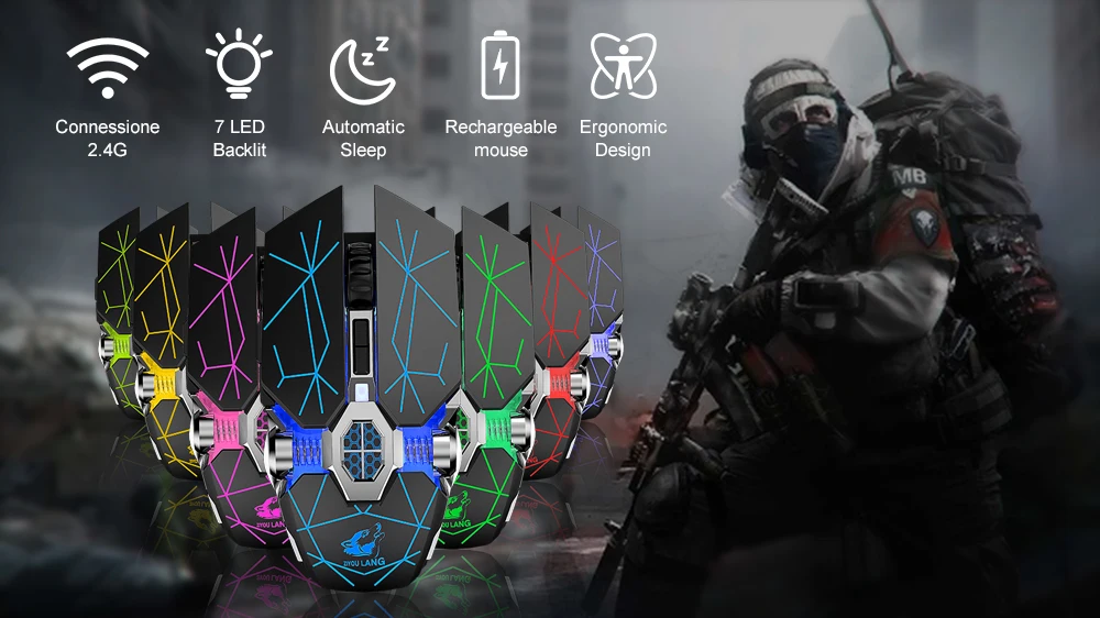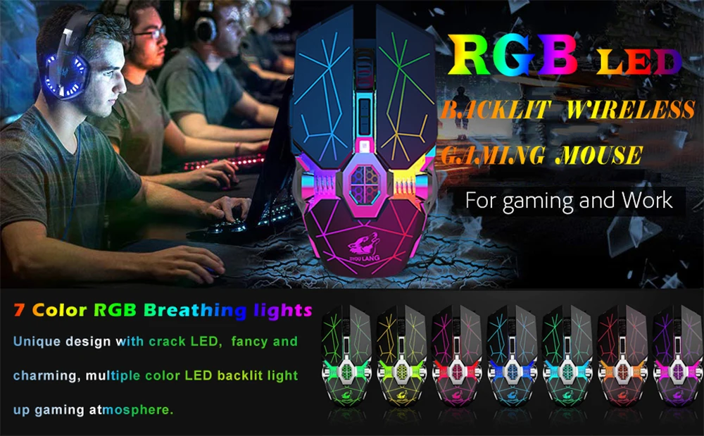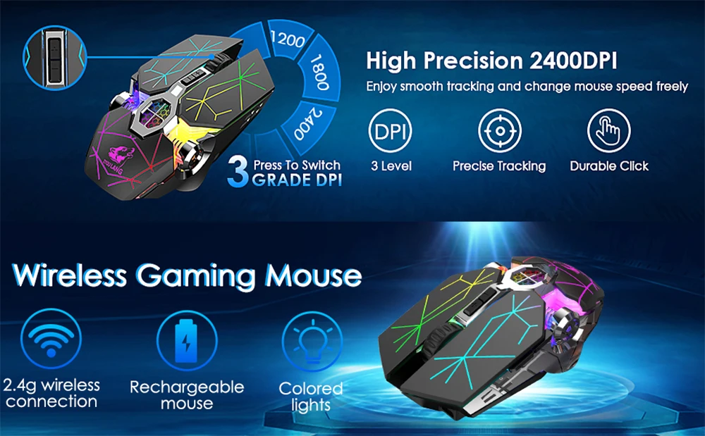 Wireless Gaming Mouse Rechargeable RGB Lights Adjustable DPI Quiet Click Auto Sleep Ergonomic for Gaming Or Working
