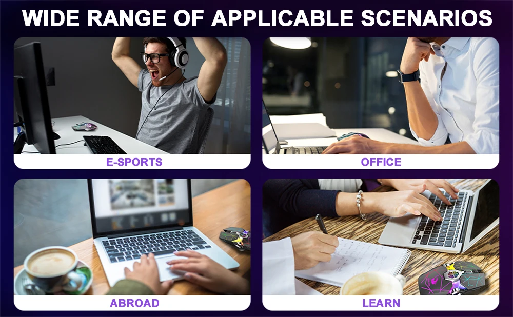 Compatible with laptops, desktops or any device with a USB port, just plug in the USB receiver and play straight away. It is widely compatible with laptops/computers with USB ports, compatible with Windows XP, Windows Vista, Win7/8, 10, Mac OS systems.