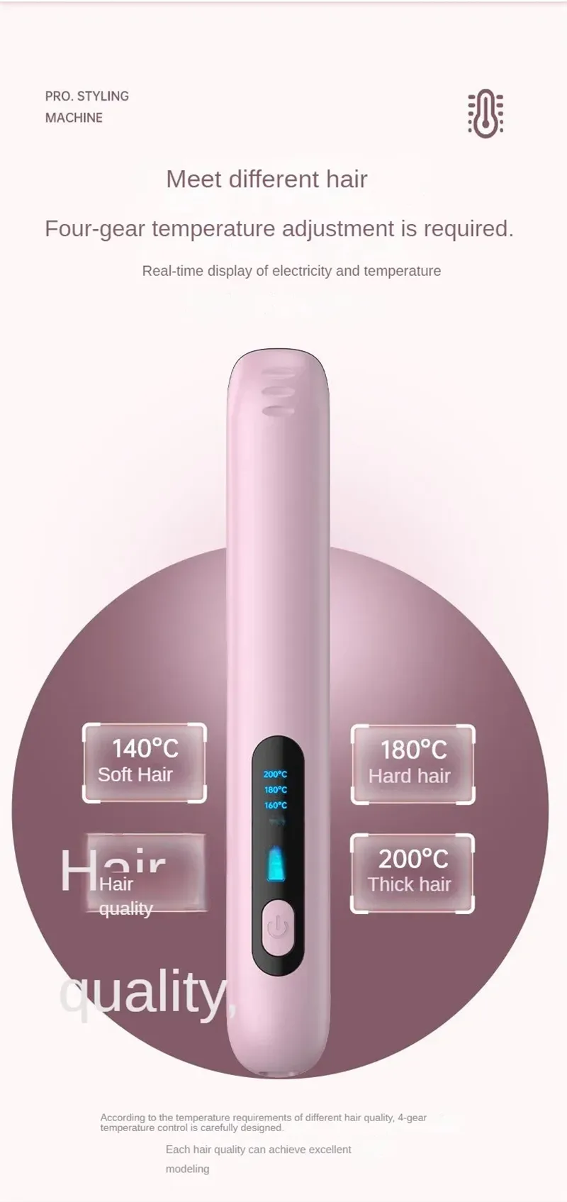 Wireless Hair Straightener Flat Iron Mini 2 IN 1 Roller USB 5000mAh Max 200 Degree Portable Cordless Curler 4 Levels Dry And Wet Uses