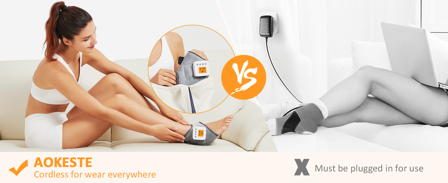 - Cordless and Portable: With built-in rechargeable battery, our cordless heated ankle wrap is easy to use and can move freely without long cables and power supplies. making it great for use at work, while sleeping, or while doing household chores. The ankle heating pad is small and lightweight, easy to take to the office, gym or when traveling