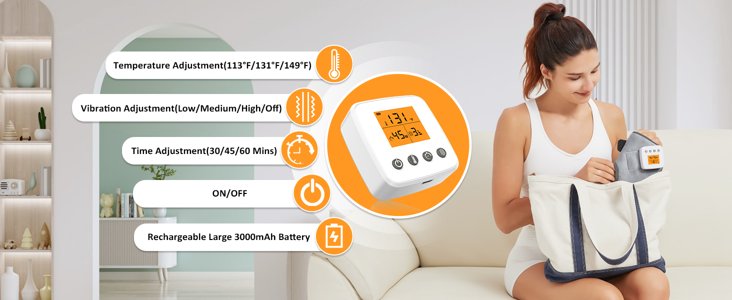 Customizable Comfort: Adjustable intensity and heat settings allow for a personalized massage experience, ensuring comfort