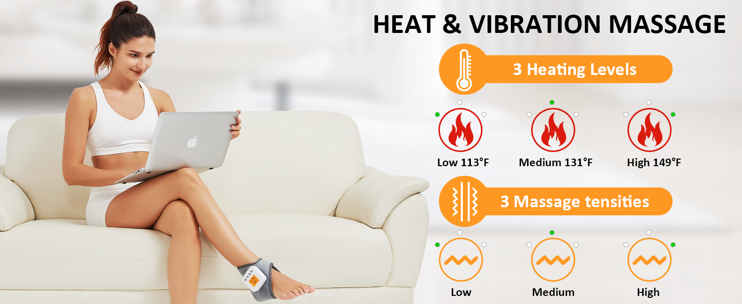 - Ankle Vibrating Massager: Portable foot heating pad provides precise vibrations to deliver comfort. With 3 massage vibration intensity modes, our ankle heating pad can accommodate varying massage intensity needs, which provides great relaxation for your ankle