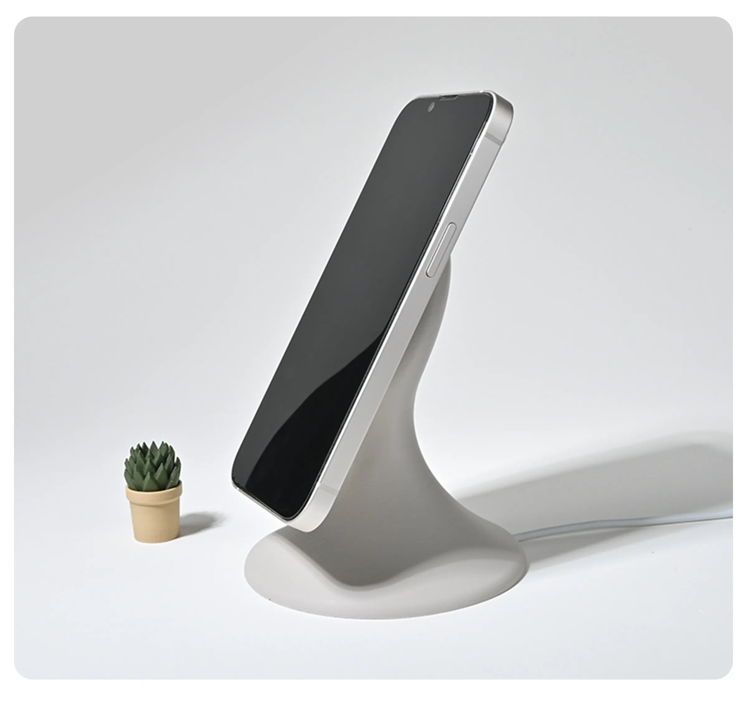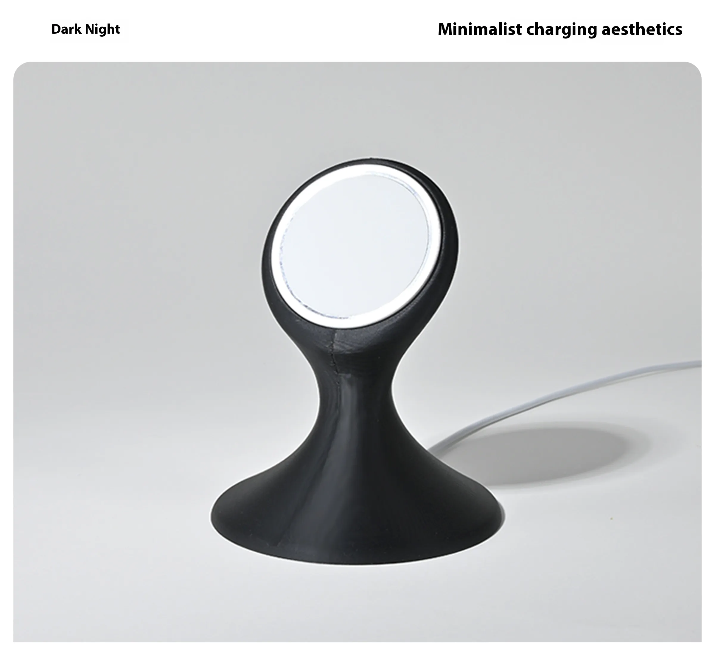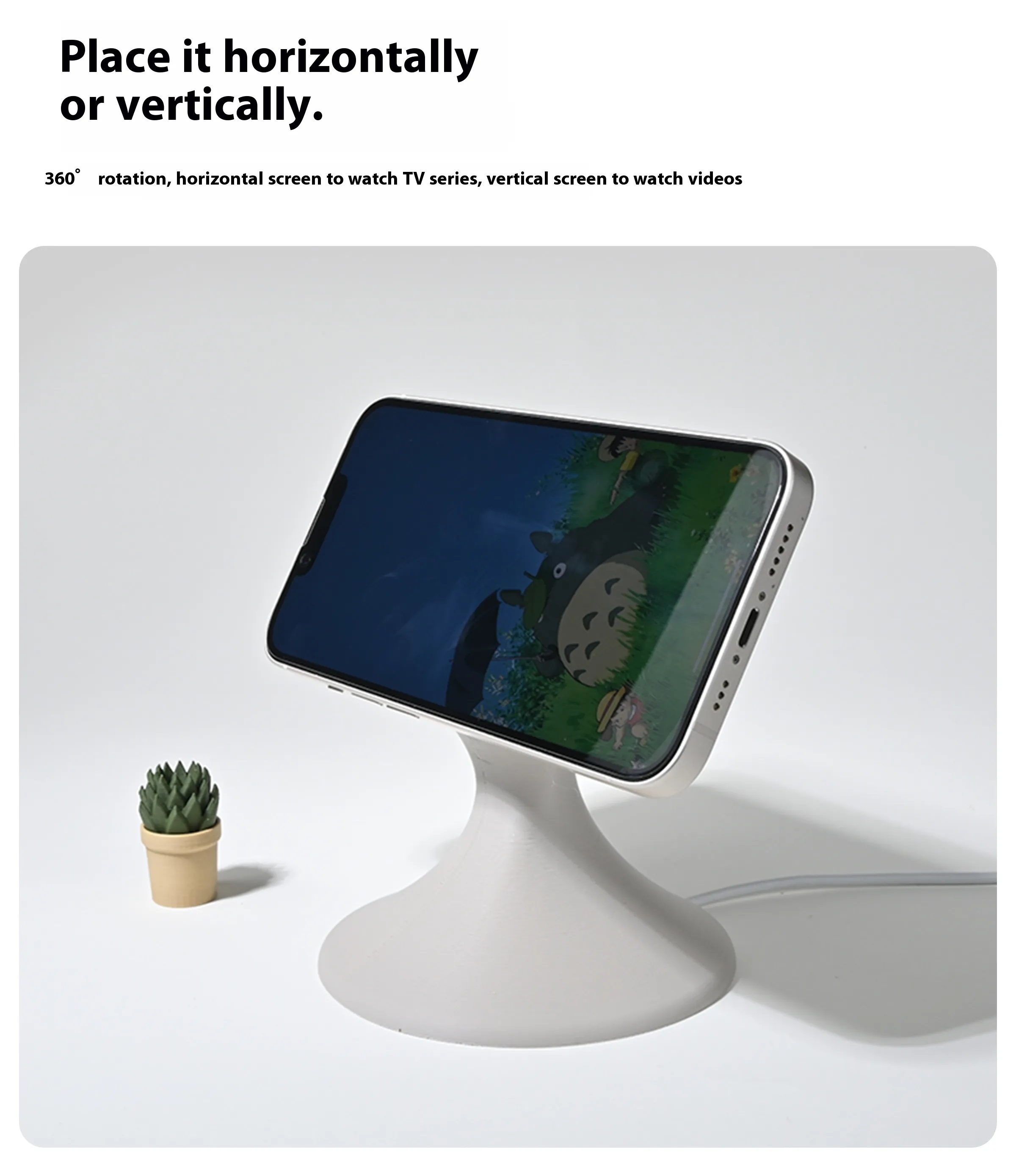 Crafted from high-quality materials, the base offers strong magnetic adhesion, ensuring your device stays in place while maintaining compatibility with wireless charging-enabled smartphones. Its sleek, minimalist design fits seamlessly into any workspace, combining functionality and modern aesthetics.