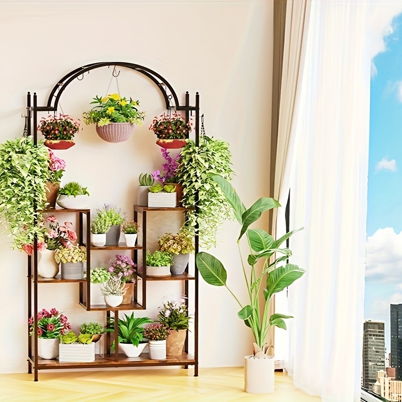 This Exquisite Plant Stand Is A True Gem, Featuring A Tall Arched Design That Immediately Catches The Eye When Placed In The Garden, Patio, Or Living Room. Its Multilayer Tiers Are Ideal For Holding A Diverse Range Of Houseplants And Flowers, Ensuring They Receive Ample Sunlight For Optimal Growth And Effortlessly Brightening Up Your Space.Enhance The Charm Of Your Garden, Lawn, Patio, And Living Room With Our Distinctive Tall Arched Plant Stand