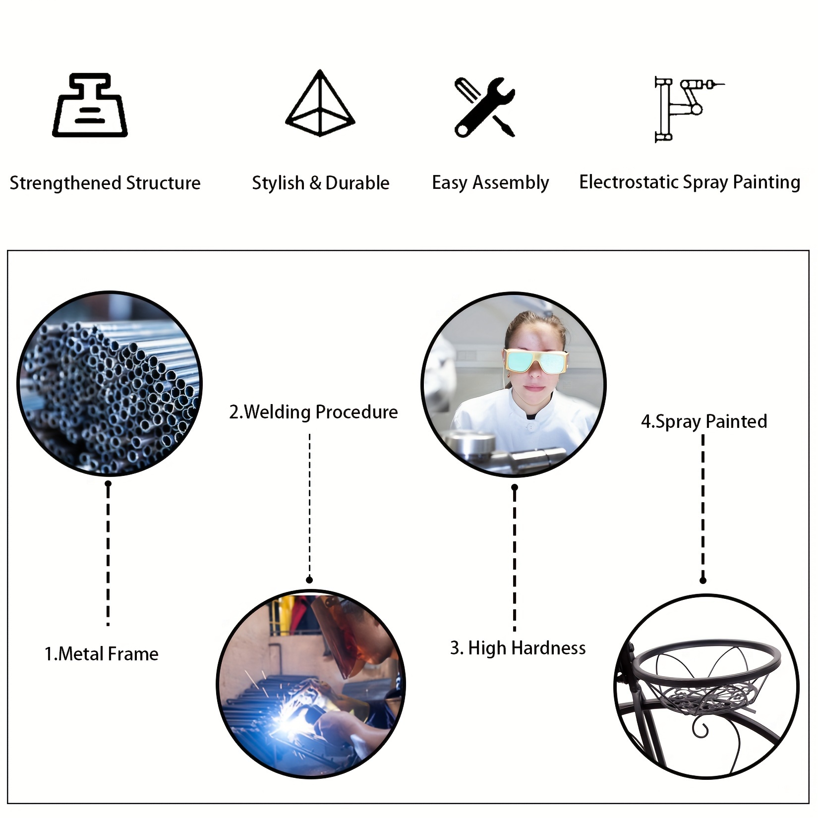 Durable Metal Construction: Made from high-quality metal iron, ensuring long-lasting durability and stability.