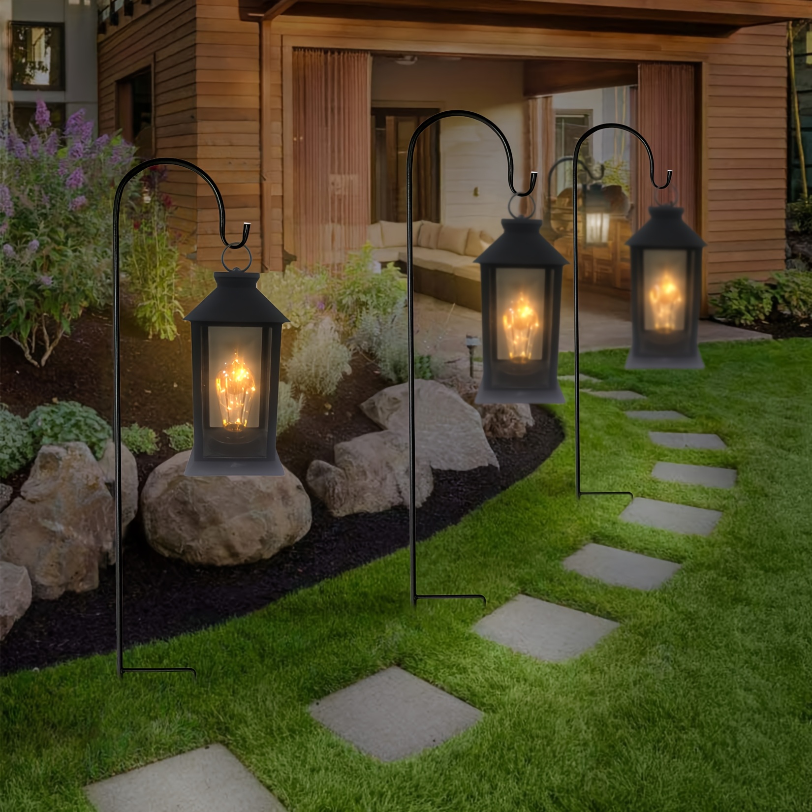 Enhanced Outdoor Decor: The elegant design of these hooks enhances the overall look of your garden or yard, providing a charming display for hanging flowers, lights, and lanterns.
