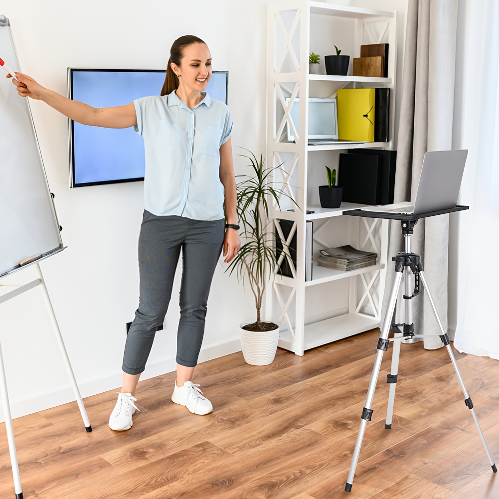 This portable stand is foldable, making it easy to store and carry, and it includes a storage bag for added convenience. Whether you're setting up in the office or on the go, this stand offers a practical, space-saving solution for your projector, laptop, or DVD player. Its sturdy construction ensures reliable support for your devices, while its lightweight design makes it easy to transport.
