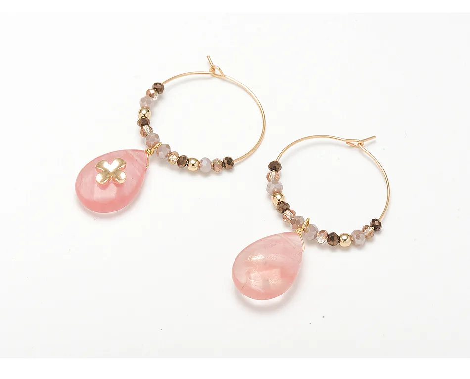How to Style the Women's Fashion Natural Stone Hoop Earrings with Pink Waterdrop Stone