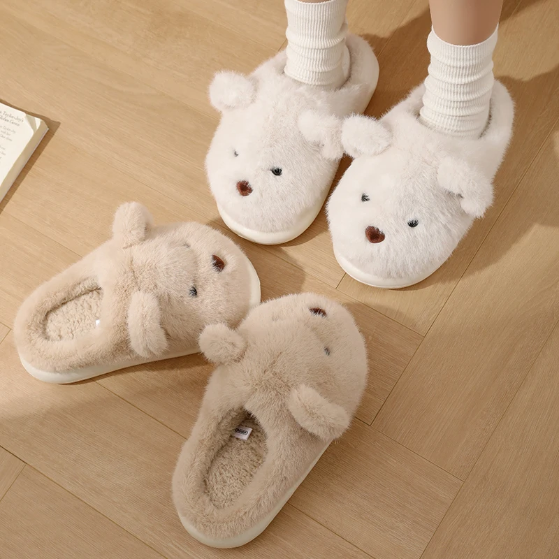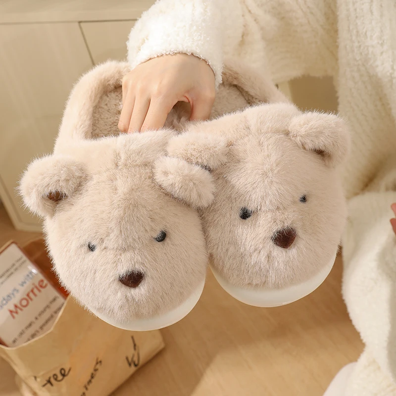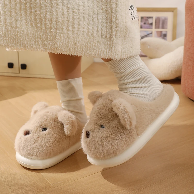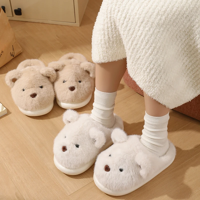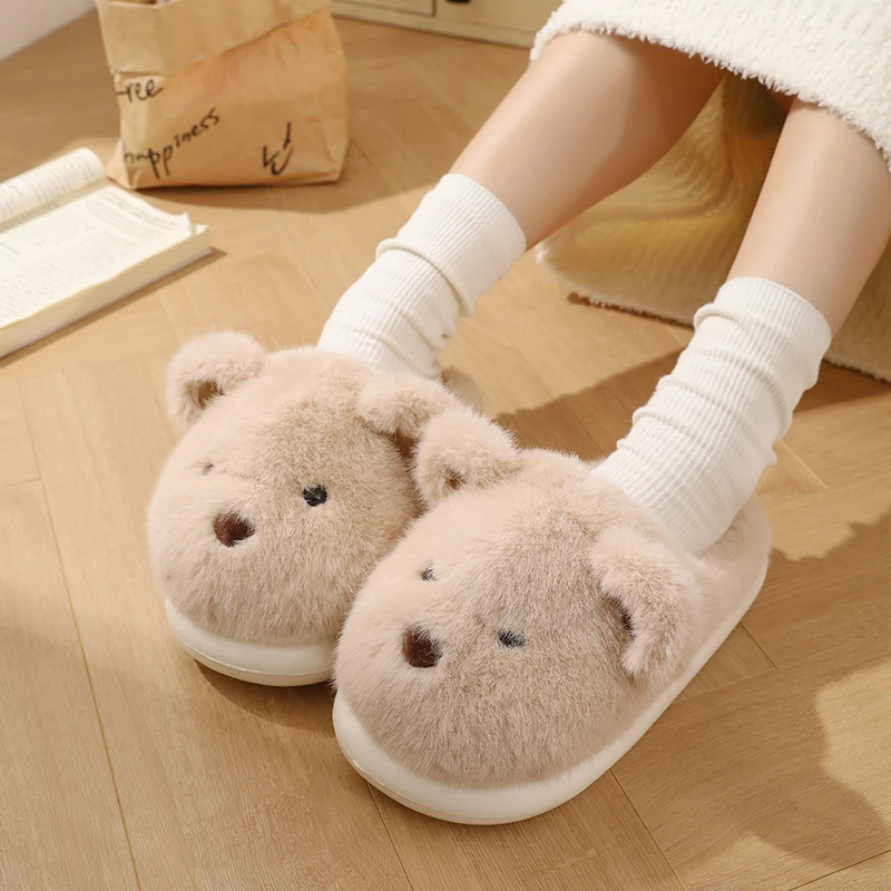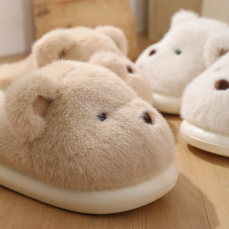 Women Warm Winter Cute Bear Slippers Men Casual Home Indoor Plush Slipper Couple Cozy Anti-slip Outdoor Cartoon Shoes