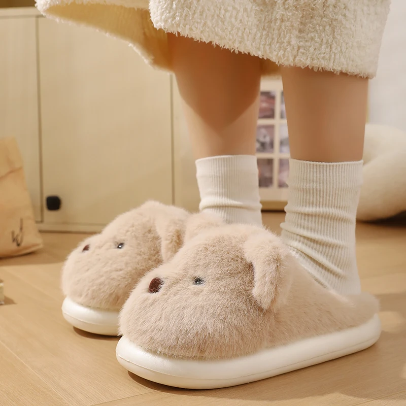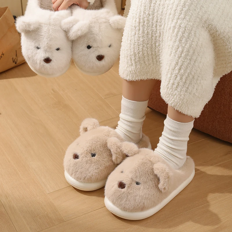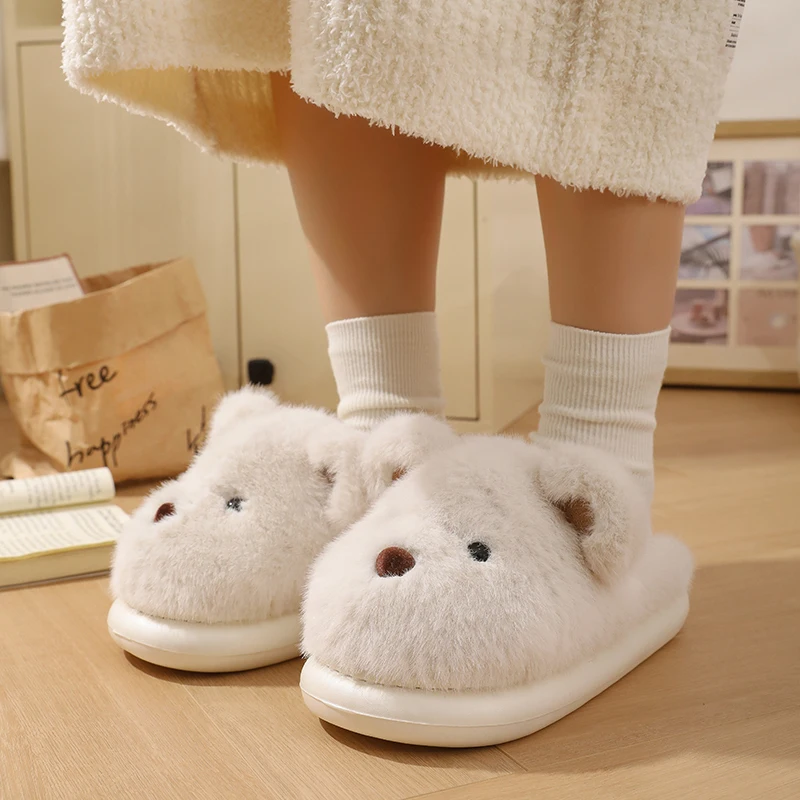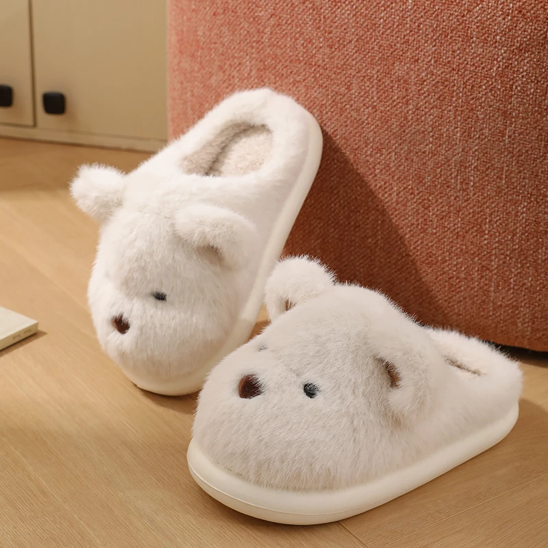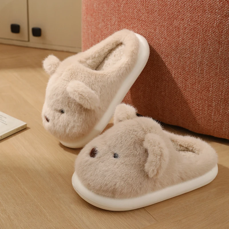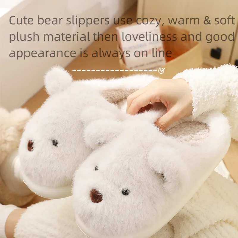 Women Warm Winter Cute Bear Slippers Men Casual Home Indoor Plush Slipper Couple Cozy Anti-slip Outdoor Cartoon Shoes