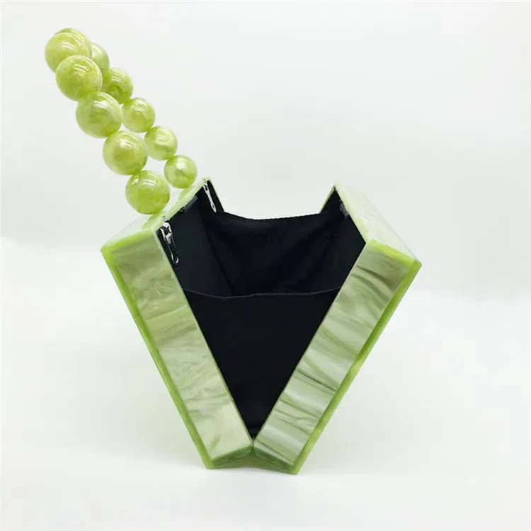 Description – Green Acrylic Evening Bag Beaded Handle Small Square Bag Portable Women's Dress Bag