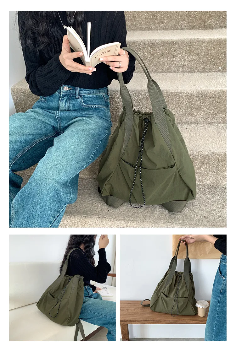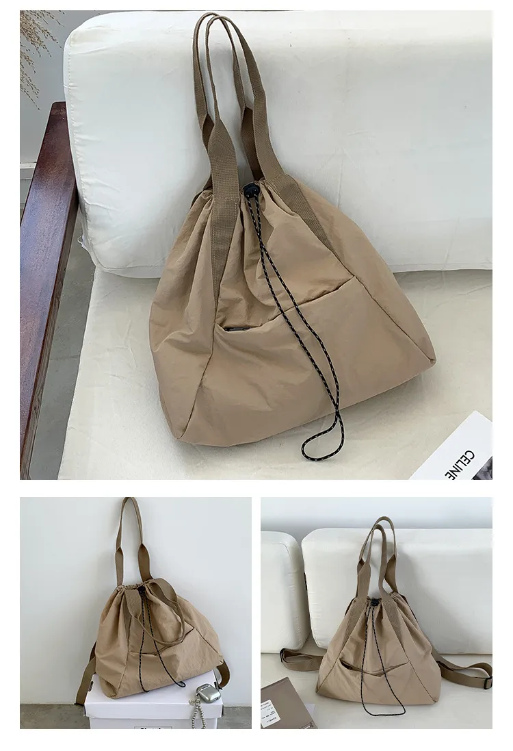 Add a pop of casual chic to your everyday look with the Women's Casual Korean Version Drawstring Tote Bag. Designed with a trendy drawstring closure, this tote offers a relaxed and fashionable look, perfect for daily outings or a weekend adventure. The versatile design provides ample space for all your essentials, from your phone and wallet to snacks and books, making it ideal for shopping trips, the beach, or casual meetups.