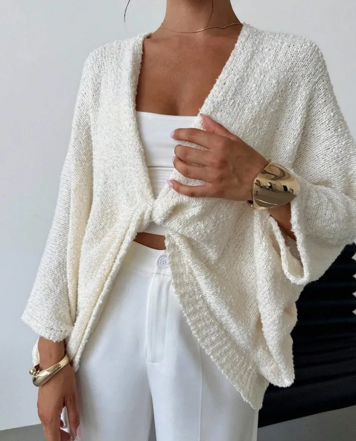 Crafted from soft, breathable fabric, this sweater feels comfortable against the skin and provides just the right amount of warmth for transitional seasons. The simple and elegant design makes it easy to pair with a variety of bottoms, from jeans to skirts to leggings, offering endless styling options. The cross deep V-neck adds a touch of sensuality and sophistication without being too revealing, making it a versatile piece for any wardrobe.