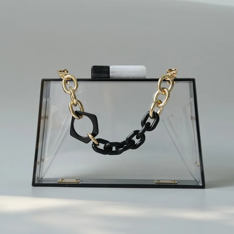 Whether you're attending a cocktail party, a wedding, or a night out on the town, this acrylic tote bag adds a contemporary flair to your outfit. The sturdy handle ensures easy carrying, while the chic design complements both formal and semi-formal attire. This is the ideal accessory for women who love to stand out with a trendy, fashion-forward evening bag.