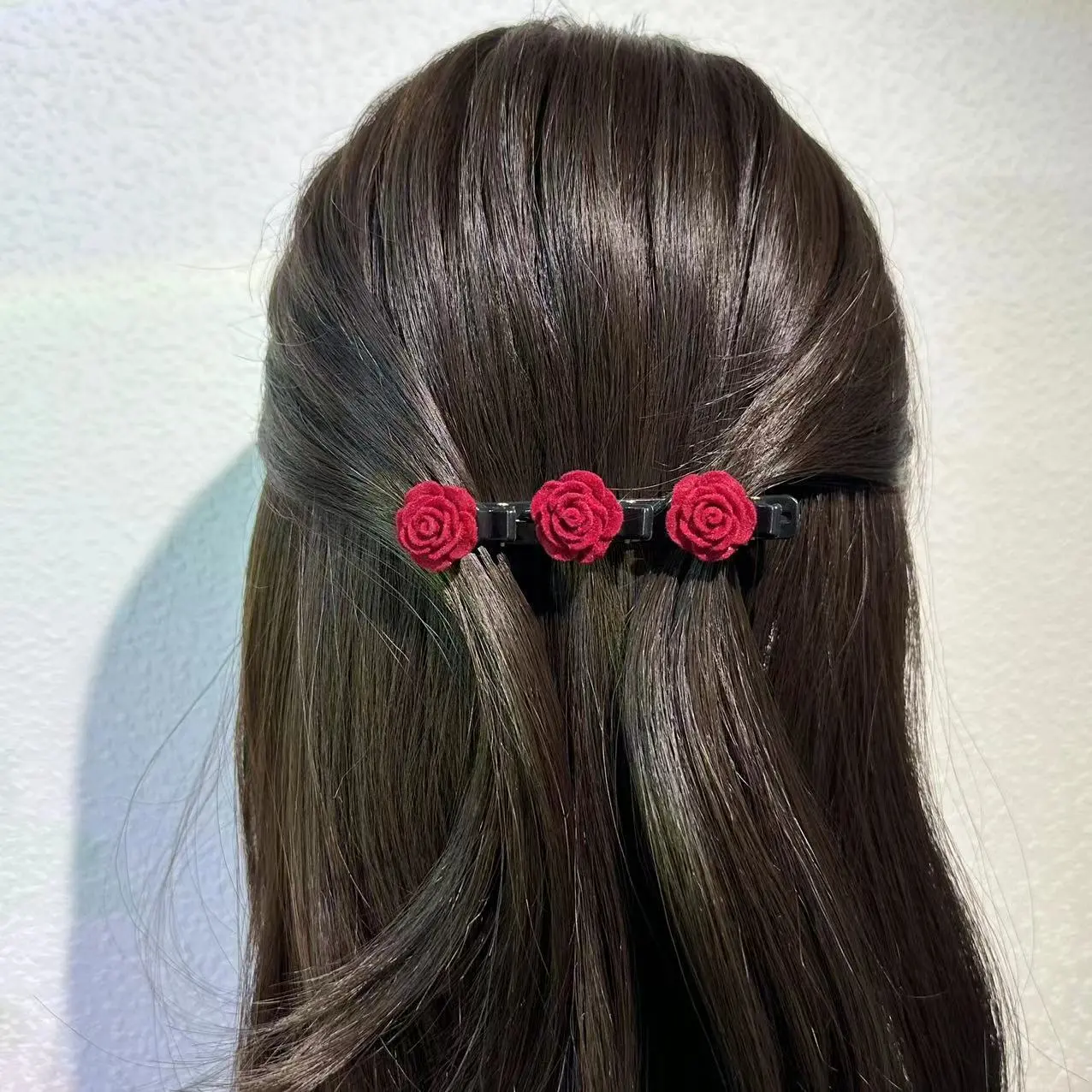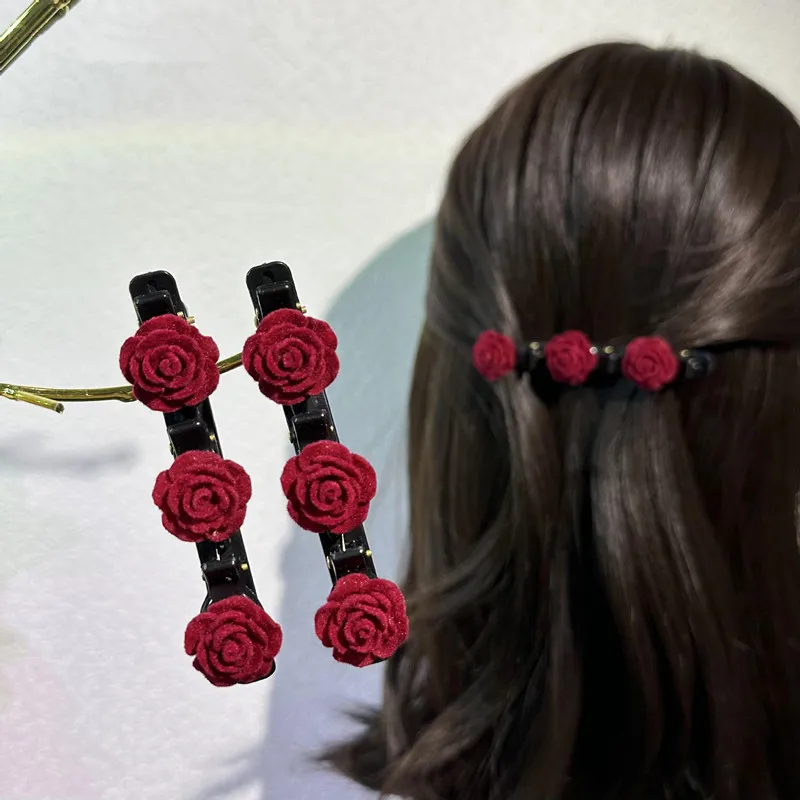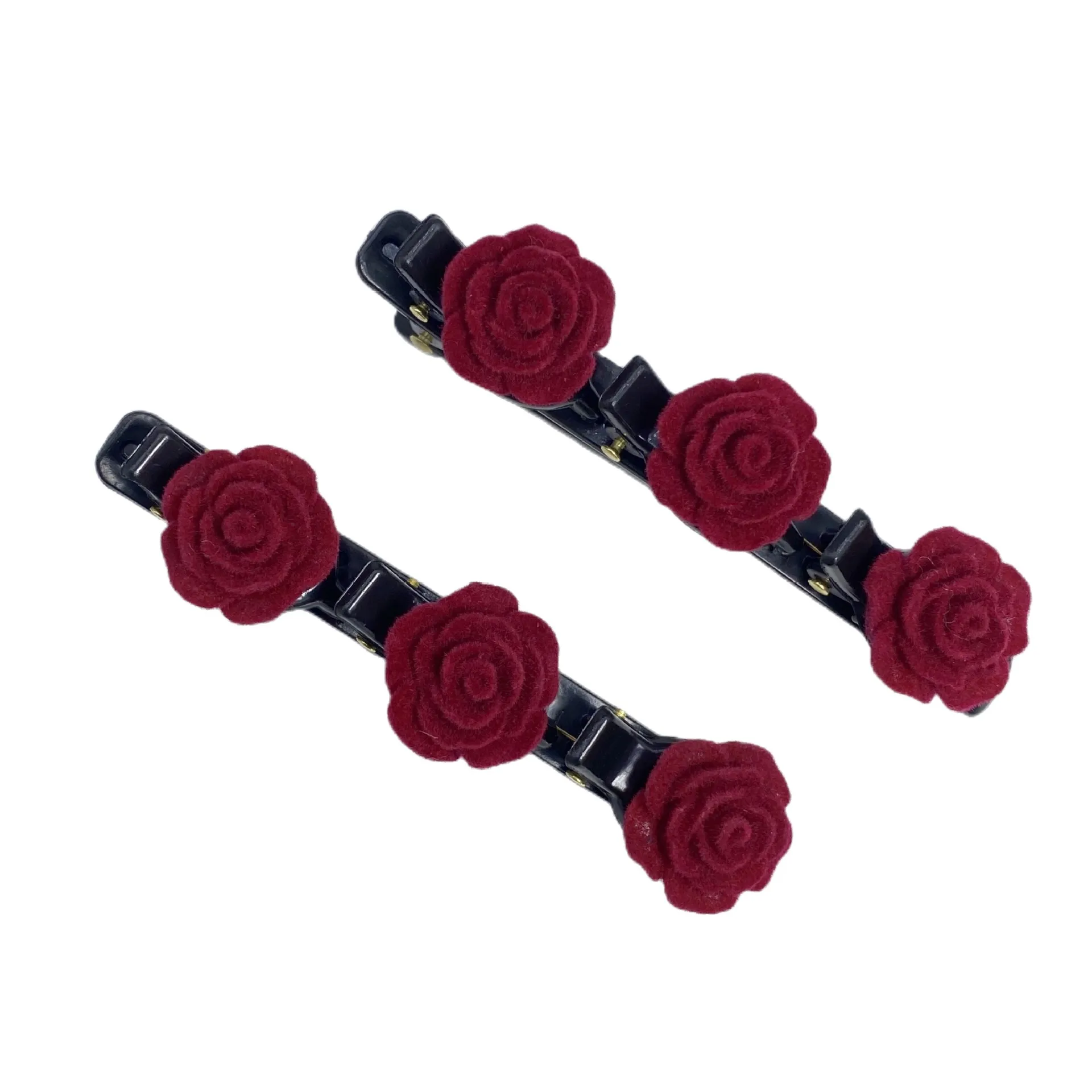 Women's Fashion Vintage Rose Red Flocked Hair Clip