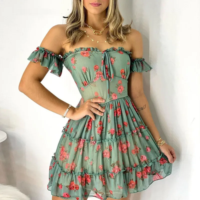 With its refreshing floral print and spring-inspired green tones, this dress adds a lively and elegant touch to your seasonal wardrobe. Lightweight, breathable, and stylish, it is perfect for women looking to combine comfort and fashion effortlessly.