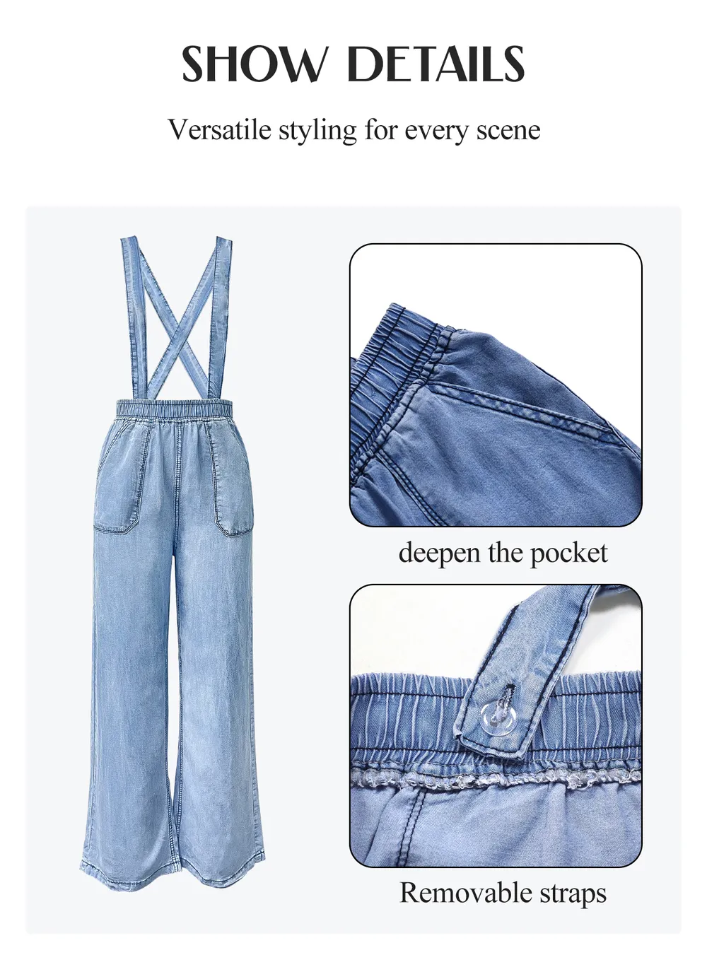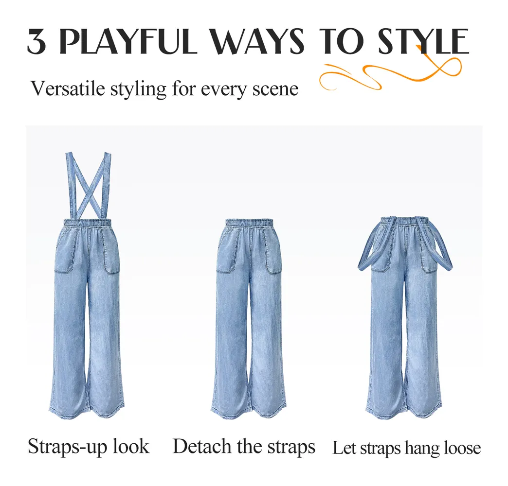 The Women's High-Waist Jeans with Convertible Wide-Leg Full-Length Design and 3-in-1 Adjustable Hem are a must-have for any fashion-forward woman seeking comfort, style, and versatility. Crafted from sustainable Tencel Lyocell fabric, these jeans are soft, breathable, and eco-friendly, making them the perfect choice for warmer months. The high-waist design provides a flattering fit, while the wide-leg silhouette offers a relaxed, modern look that's both trendy and comfortable.