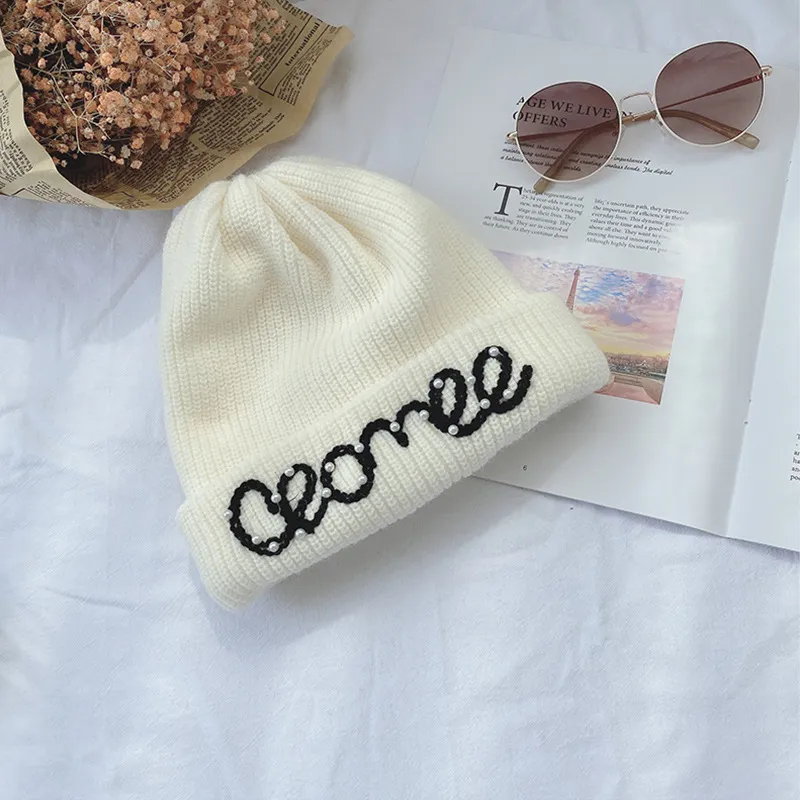 Women's Knitted Hat Pearl Small Fragrant Woolen Hat