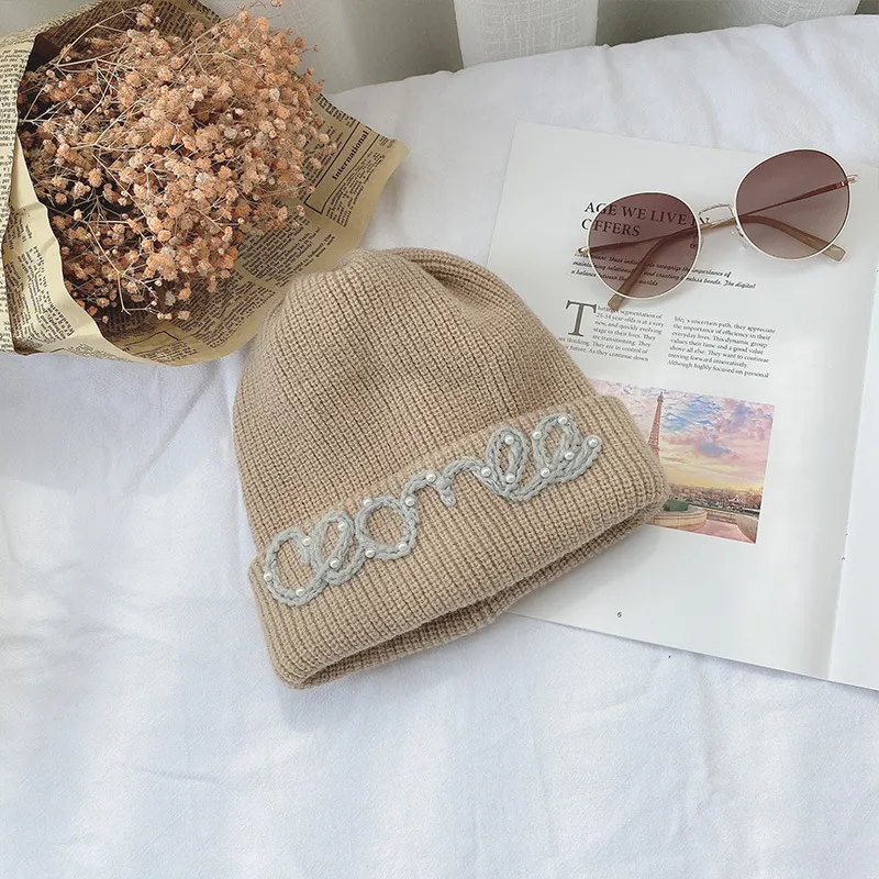 Women's Knitted Hat Pearl Small Fragrant Woolen Hat