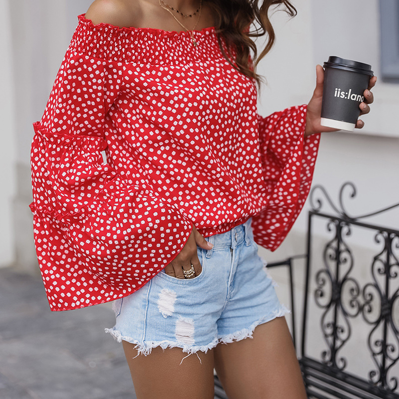 Women's One-Word Collar Off-Shoulder Small Shirt With Flared Sleeves Long Sleeve