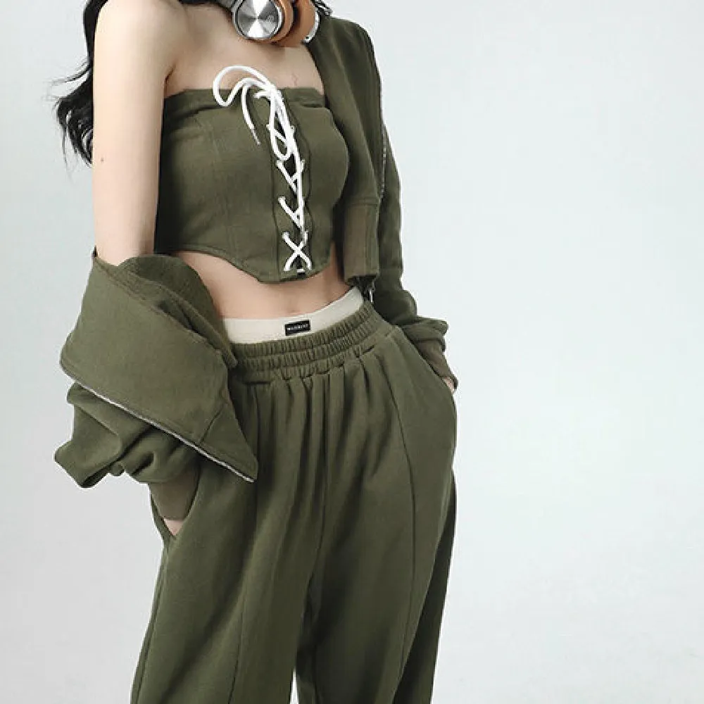Vest + hoodie + sweatpants