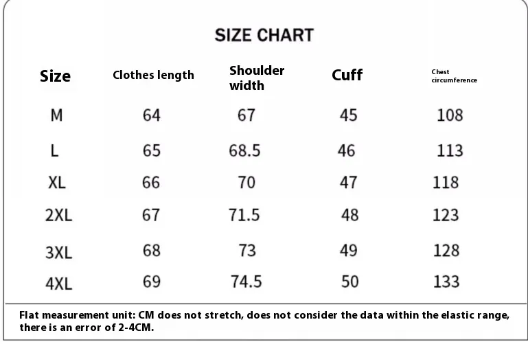(72.50kg-80.00kg recommended),4XL (80.00kg-90.00kg recommended)