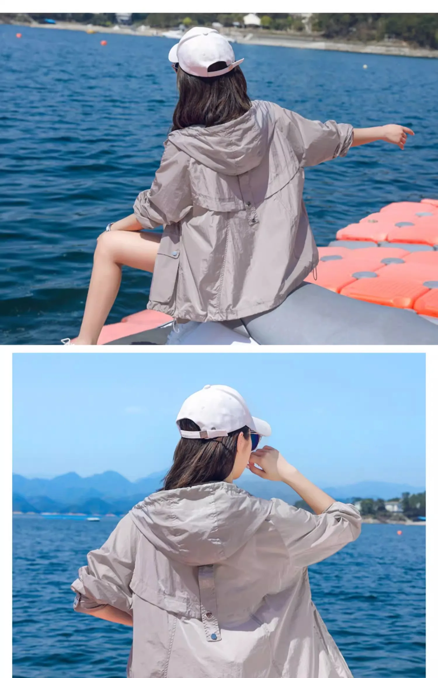 skin safe from the sun's harmful effects. Whether you're at the beach, hiking, or simply strolling outside, this jacket offers reliable sun