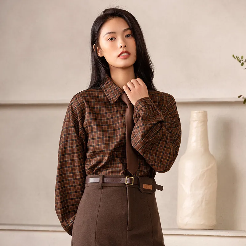 Women's Preppy Plaid Tie Long Sleeve Shirt – A Stylish Blend of Classic Charm and Modern Comfort