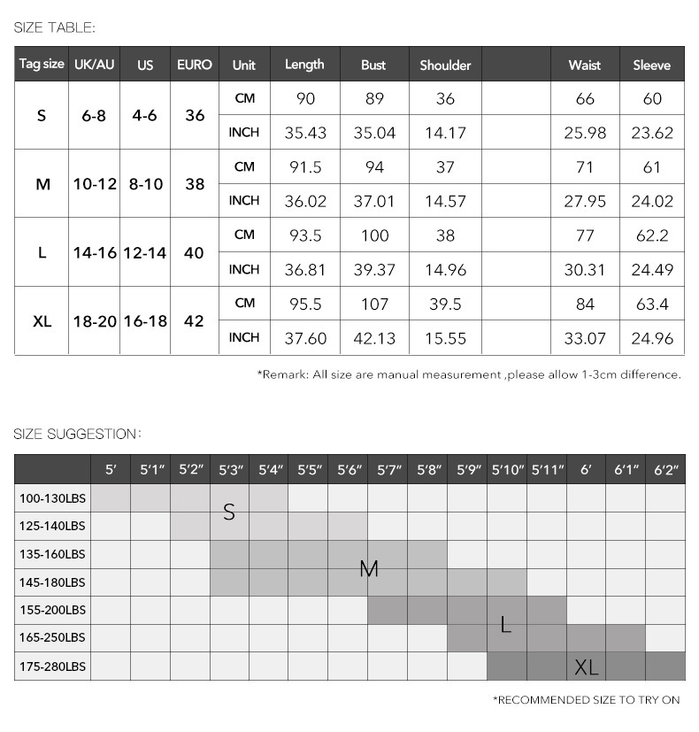 2-3cm differences due to manual measurement. 2. Please check the size chart carefully before you buy the item, if you don't know how to