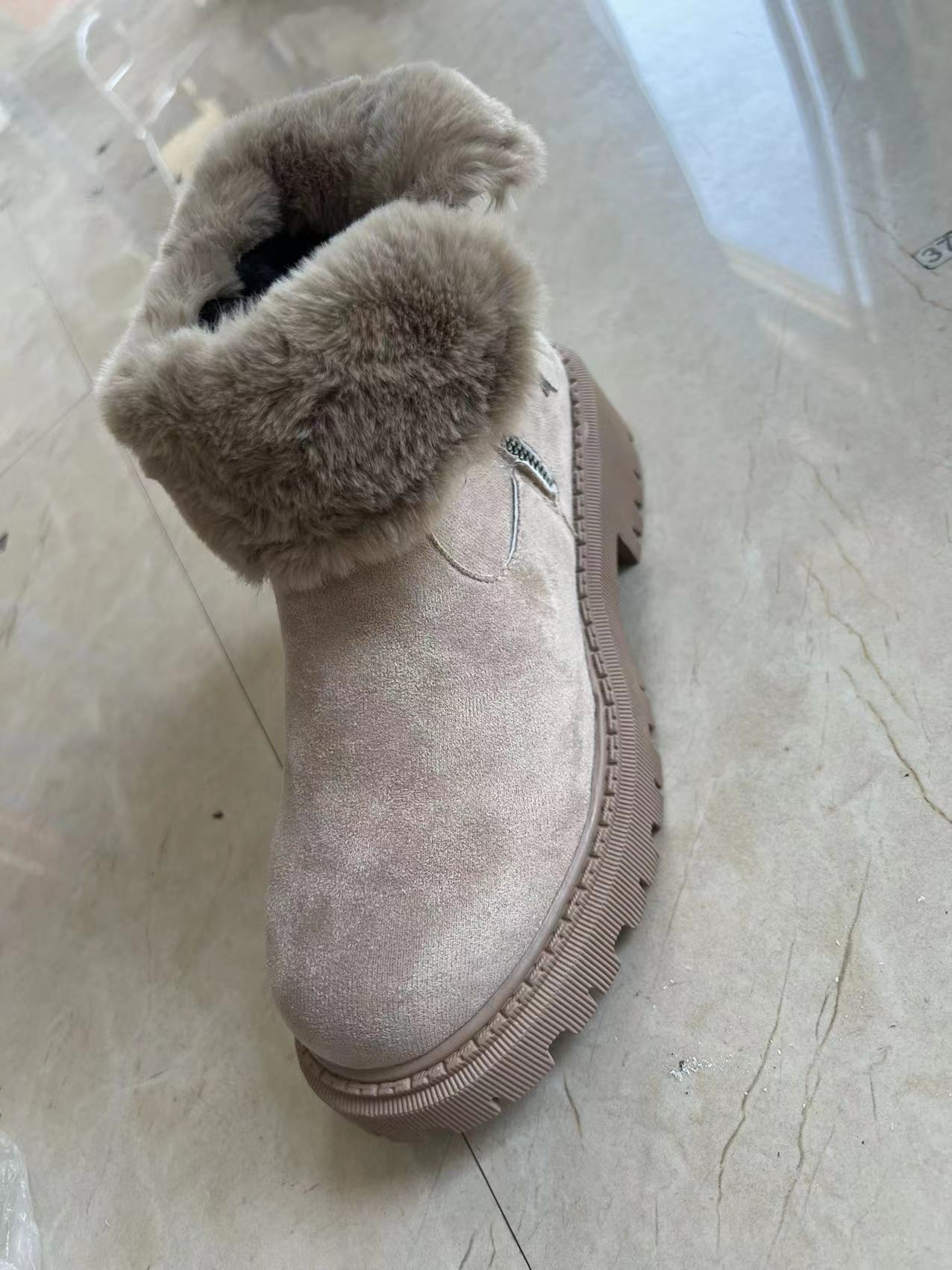 Women's Snow Boots Winter Warm Foldable Plush Tube Short Boot Solid Color Round-toe Platform Shoes