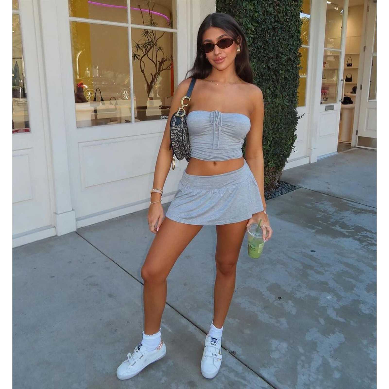 Unleash your inner Y2K hot girl with this stylish and beautiful Women's Suits Summer Sleeveless Tube Top and Pleating Skirt Set. Perfect for sunny summer days, this trendy ensemble combines comfort and fashion, ensuring you look and feel your best.