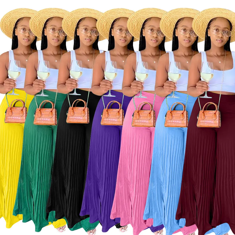 Women’s Summer Pleated Chiffon Solid Color Wide-leg Pants