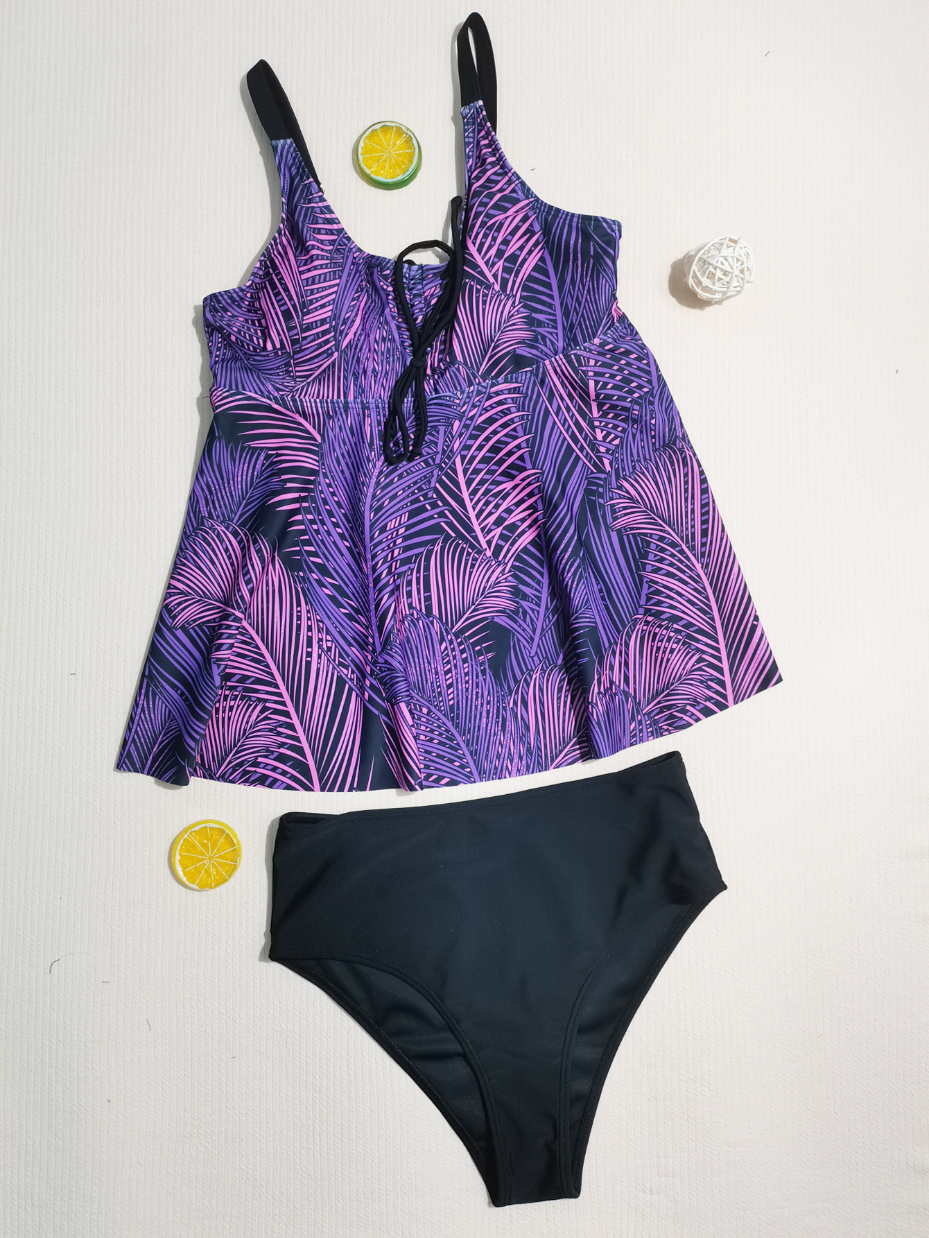 This tankini set is versatile and suitable for a variety of summer activities. Whether you're lounging by the pool, enjoying a day at the beach, or exploring tropical destinations, this set provides the perfect blend of style and comfort. The vibrant tropical print is eye-catching and versatile, making it easy to pair with beach accessories like wide-brimmed hats, sarongs, and flip-flops. The fabric's resistance to chlorine and UV rays ensures that the colors remain bright and vibrant even after multiple uses, making this set a durable addition to your swimwear collection.